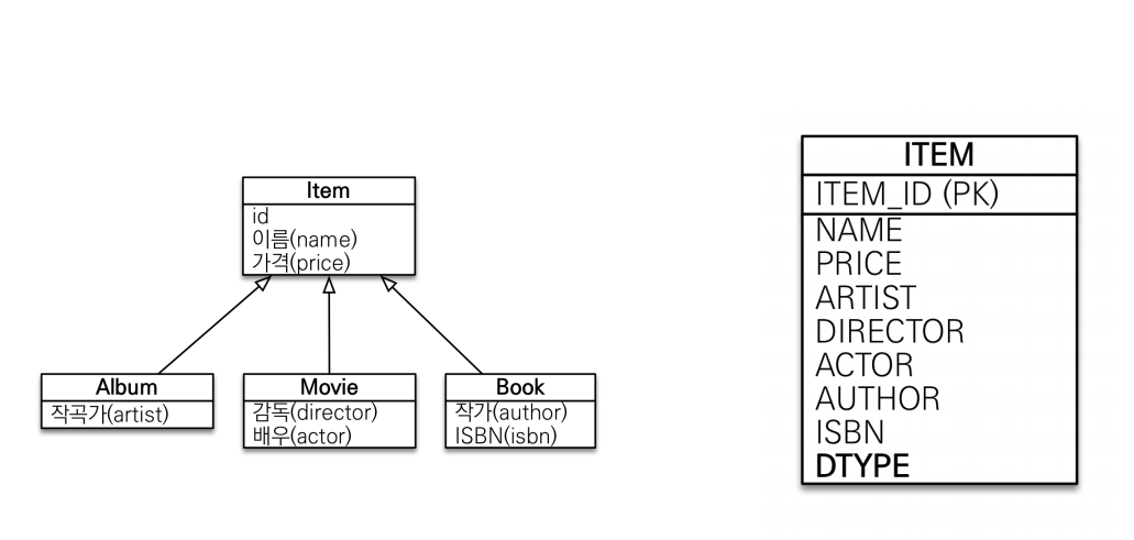 2) 통합 테이블로 변환 > 단일 테이블 전략
