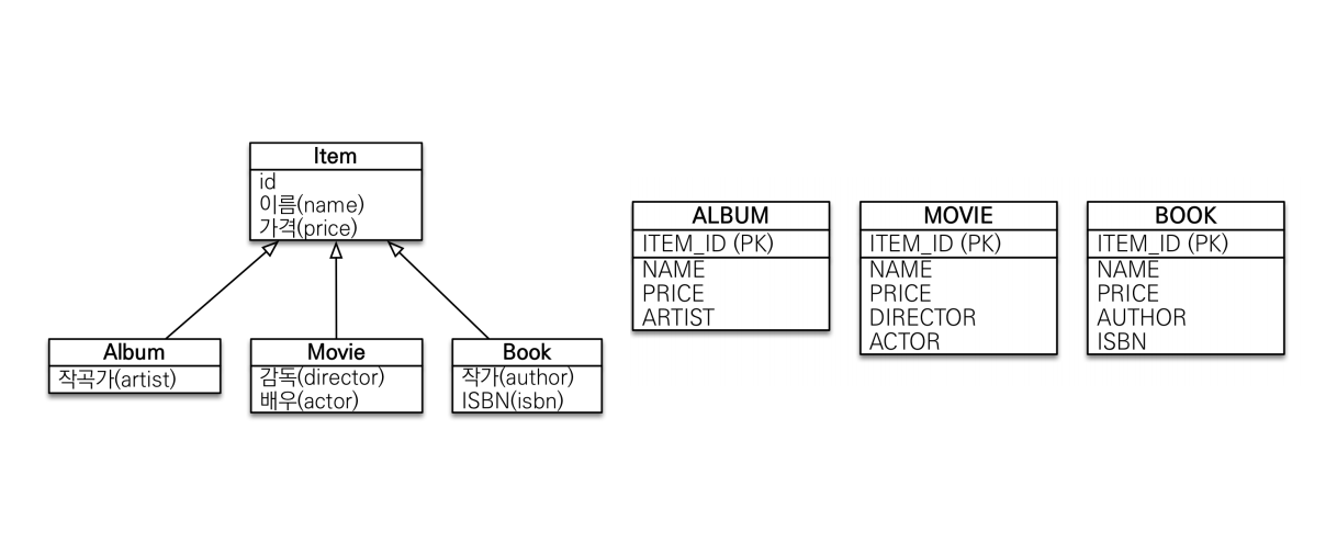 3) 서브타입 테이블로 변환 > 구현 클래스마다 테이블 전략