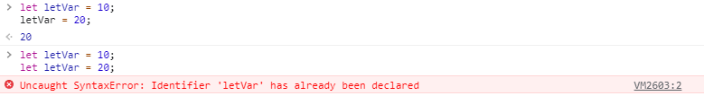 let은 값 변경이 가능한 변수입니다. 다만, 한번 선언한 값에 대해서 다시 선언할 수 없습니다.