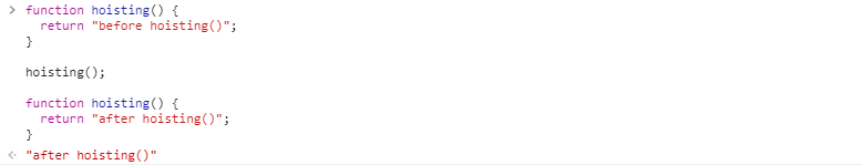 hoisting()이란 function을 Overriding하기 전 호출을 했음에도 Overriding한 함수의 결과 출력 단, 함수표현식은 대상이 아닙니다.