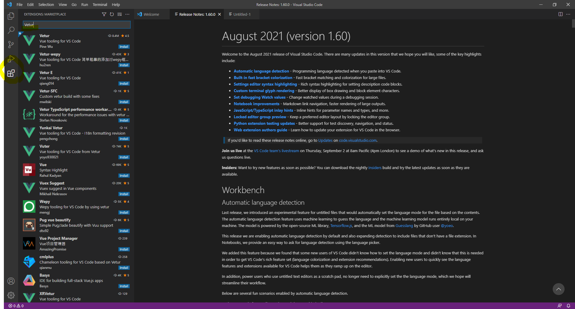 EXTENSIONS: MARKETPLACE > Vetur : Vue plugin