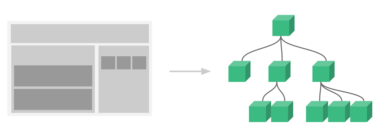 좌 : 웹 페이지 한 화면의 영역을 역할별로 분할, 우 : 각각 분할된 영역 간의 관계도 2. 컴포넌트 등록