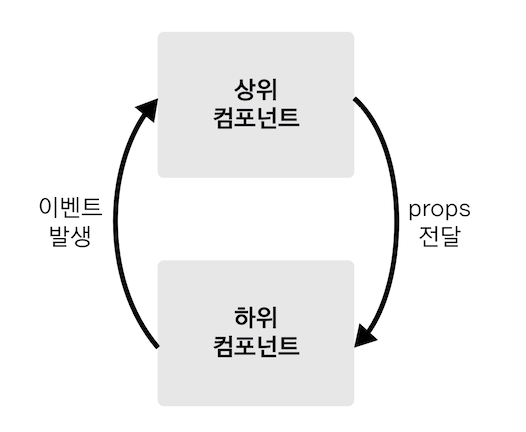 /* [하위 컴포넌트의 props 속성 정의 방식] Vue.component('child-component', { props: ['props 속성 이름'], }); [상위 컴포넌트의 HTML 코드] <child-component v-bind:props 속성 이름="상위 컴포넌트 data 속성"></child-component> */ <!DOCTYPE html> <html> <head> <meta charset="utf-8"> <meta name="viewport" content="width=device-width, initial-scale=1.0"> <title>Vue Props Sample</title> </head> <body> <div id="app"> <!-- 3. HTML에 컴포넌트 태그 추가 Tip) 오른쪽에서 왼쪽으로 속성을 읽으면 더 수월합니다. --> <child-component v-bind:propsdata="message"></child-component> </div> <script src="https://cdn.jsdelivr.net/npm/vue@2.5.2/dist/vue.js"></script> <script> Vue.component('child-component', { // 2. 하위 컴포넌트 등록 props: ['propsdata'], template: '<p>{{ propsdata }}</p>',// 4. Hello Vue! passed from Parent Component }); new Vue({ // 1. 인스턴스 생성 el: '#app', data: { message: 'Hello Vue! passed from Parent Component' } }); </script> </body> </html>2) 하위에서 상위 컴포넌트로 이벤트 전달 : emit