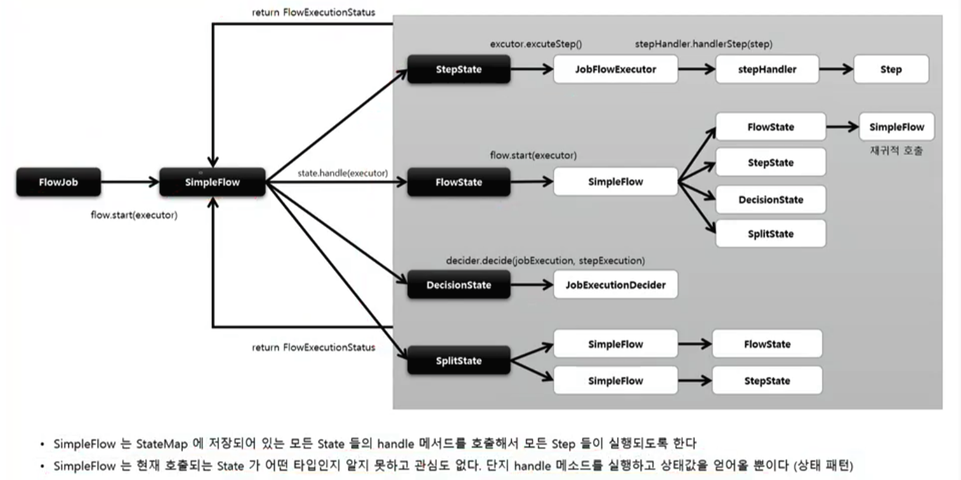 // StepBuilderFactory > StepBuilder > FlowStepBuilder > FlowStep public Step flowStep() { return stepBuilderFactory.get("flowStep") // Step 내에서 실행 될 flow 설정, FlowStepBuilder 반환 .flow(flow()) // FlowStep 객체 생성 .build(); }[참고자료]