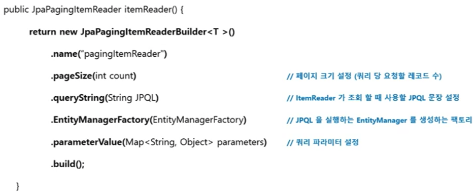 Paging 기반의 JPA 구현체로서 EntityManagerFactory 객체가 필요하며 쿼리는 JPQL을 사용합니다.