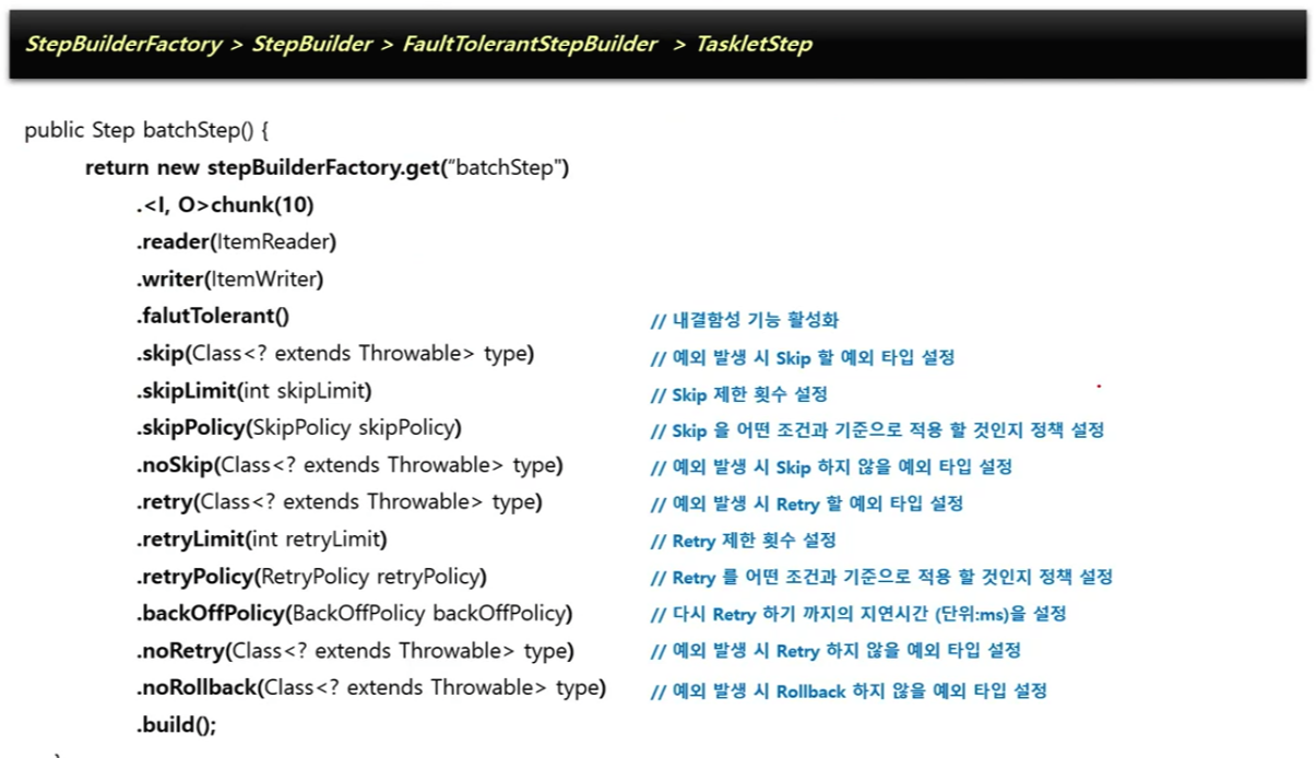 - Retry: ItemProcessor / ItemWriter에 적용할 수 있습니다.