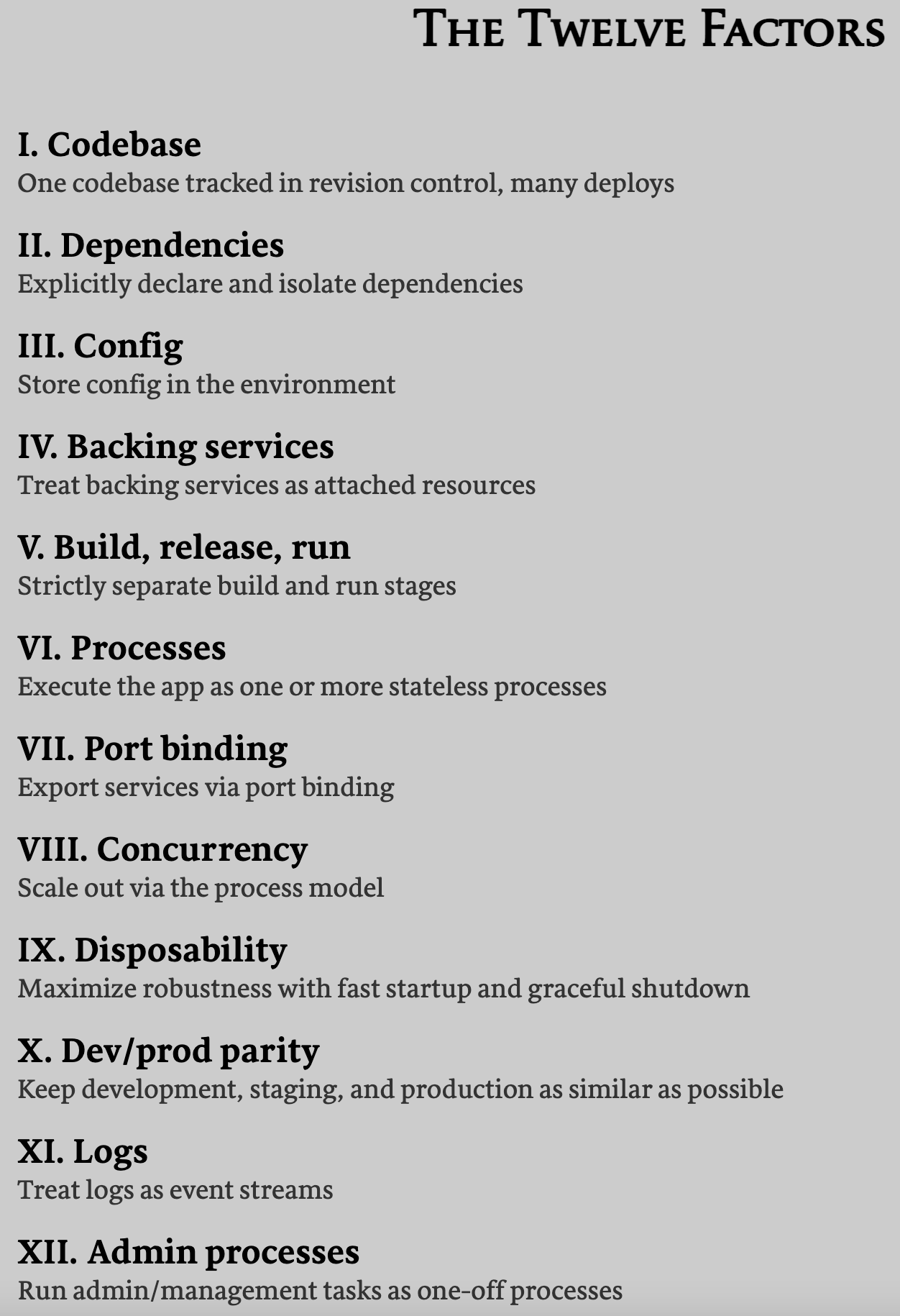 12-Factors는 Heroku에서 제시한 12가지 원칙으로 Cloud Native Application을 개발하거나 서비스를 운영할 때 적용 가능합니다.