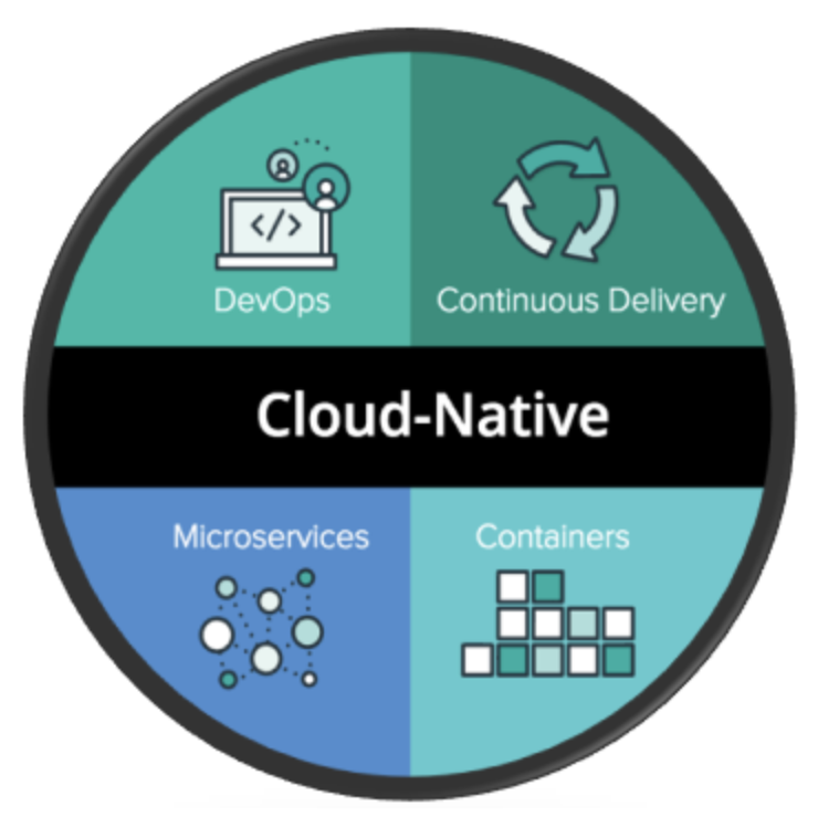 Cloud Native Application의 특징에 대해 알아보겠습니다. Cloud Native Application은 아래 그림과 같이 Microservices, DevOps, CI/CD 및 Containers 가상화의 특징을 가지고 있습니다.