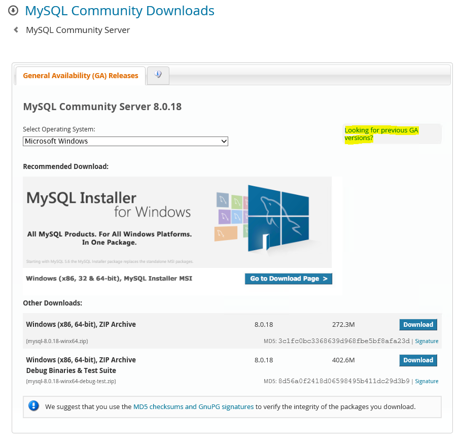 Hosting Server에서 지원하는 MySQL Version 및 OS Version 선택 후 [Download]