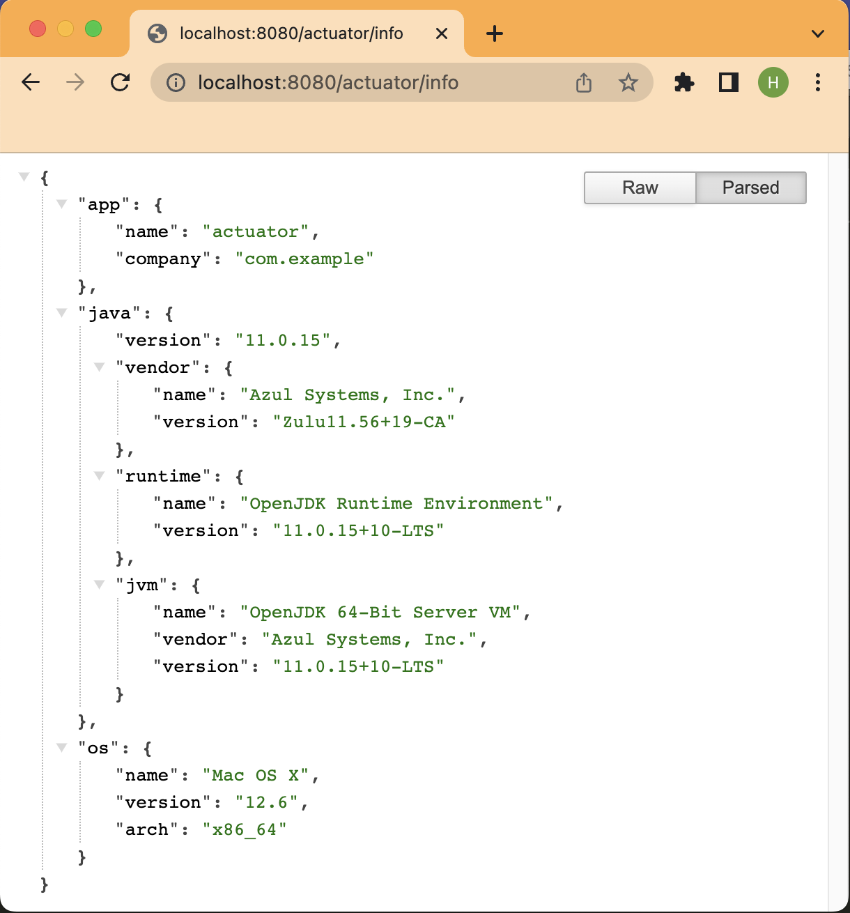 info 엔드포인트는 애플리케이션의 기본 정보를 노출합니다. env, java, os는 기본으로 비활성화 되어 있습니다.