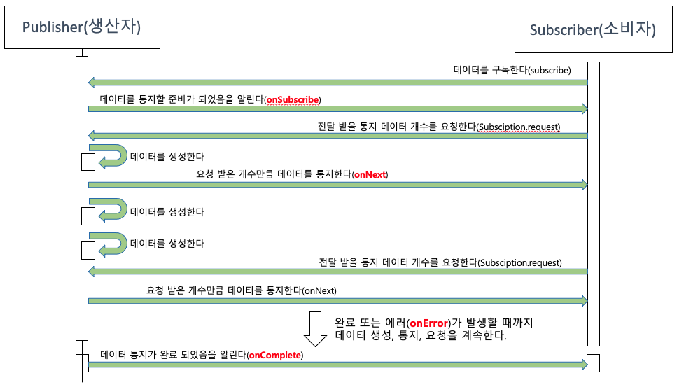 - Reactive Streams는 Publisher, Subscriber, Subscription, Processor 4개의 인터페이스를 제공합니다.