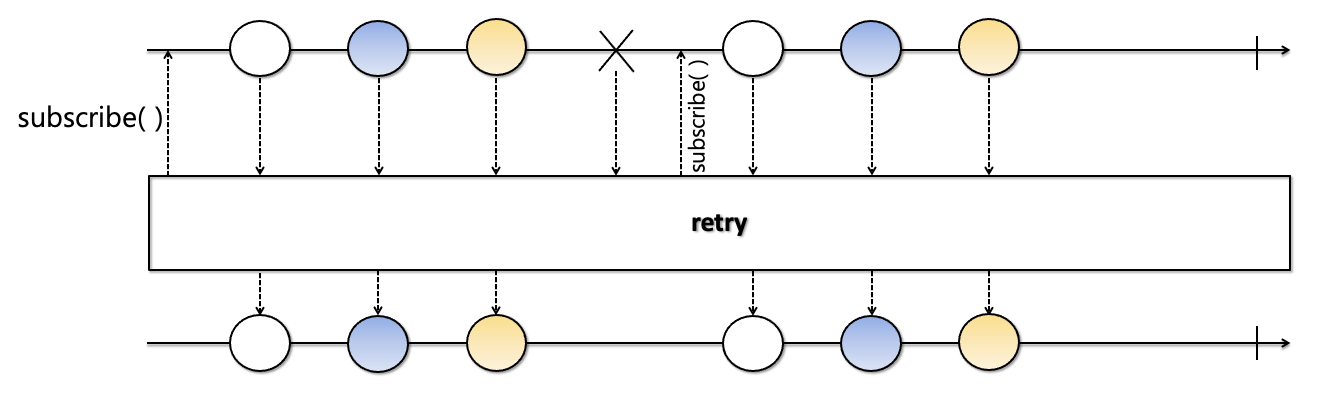 - 즉, onError 이벤트가 발생하면 subscribe()를 다시 호출하여 재구독합니다.