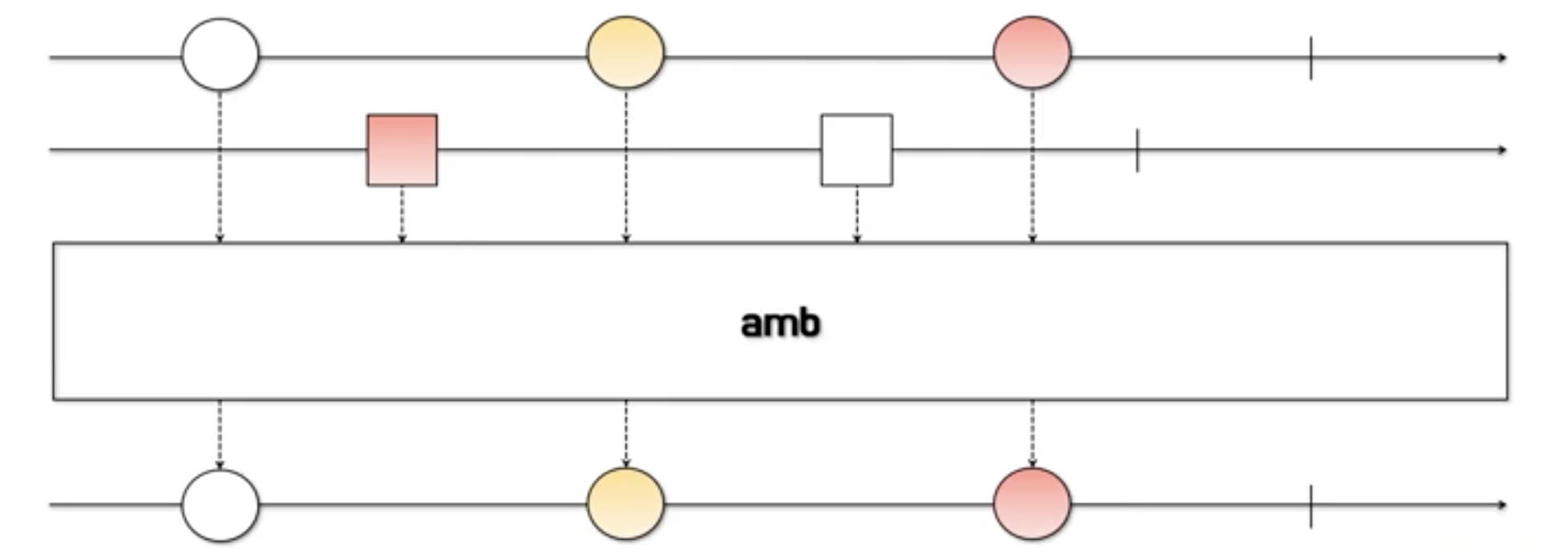 - 여러 개의 Observable 중에서 최초 통지 시점이 가장 빠른 Observable의 데이터만 통지되고, 나머지 Observable은 무시됩니다.