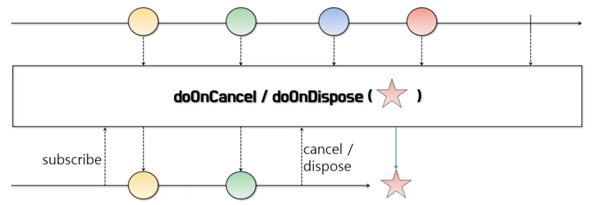 - Flowable에서는 doOnCancel, Observable에서는 doOnDispose 함수를 사용합니다.