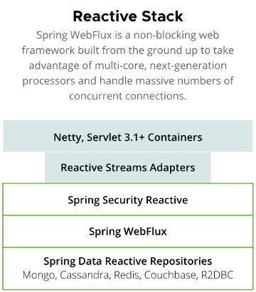 http://spring.io/reactive - Non-Blocking I/O 방식으로 동작하는 Netty 등의 서버 엔진에서 동작합니다.