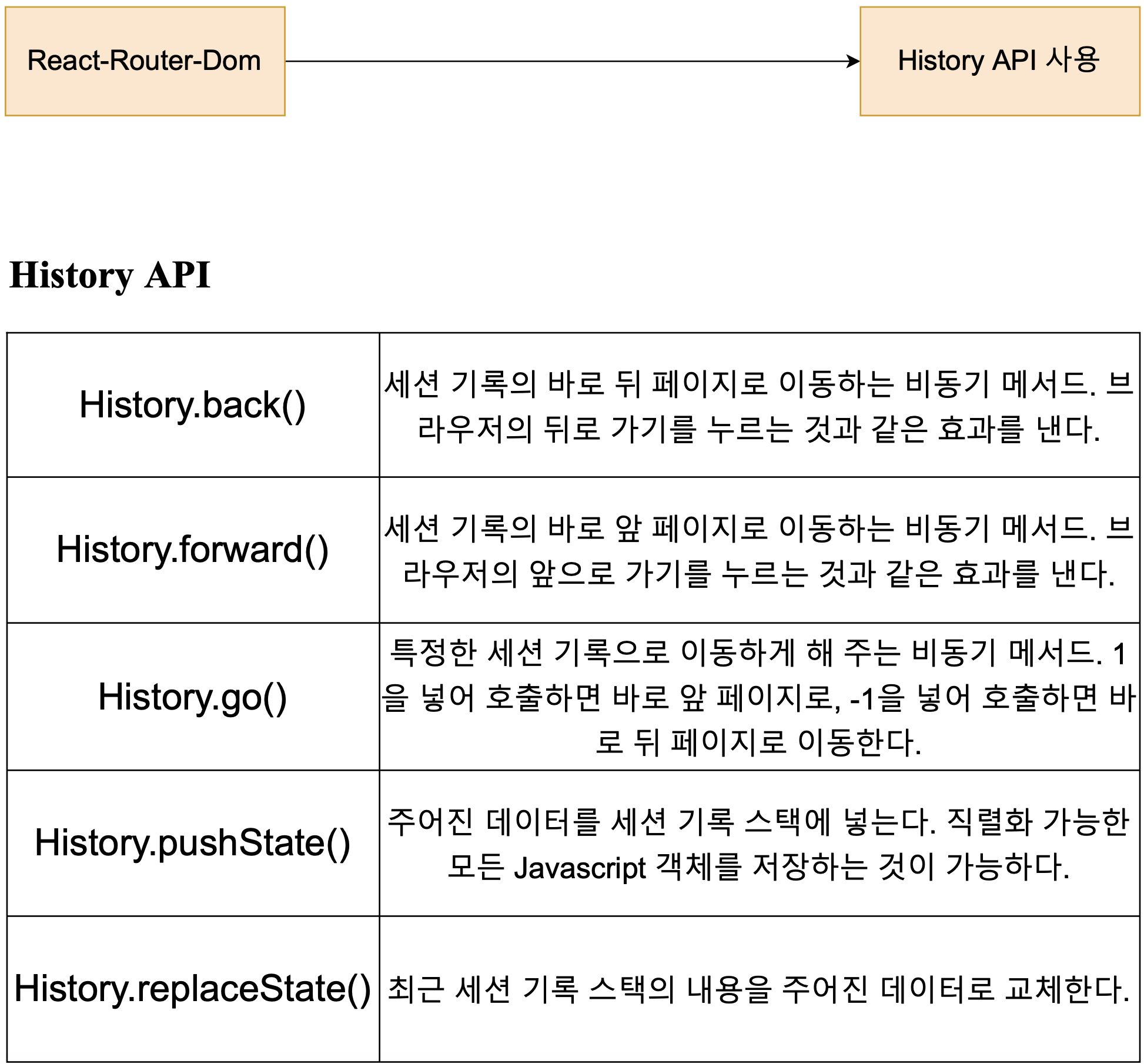 index.html 밖에 없는 SPA에서 페이지 전환(브라우징)은 HTML 5의 History API를 사용해서 가능하게 만듭니다. 자바스크립트 영역에서 History API를 이용해 현재 페이지 내에서 화면 이동이 일어난 것처럼 작동하게 해줍니다.