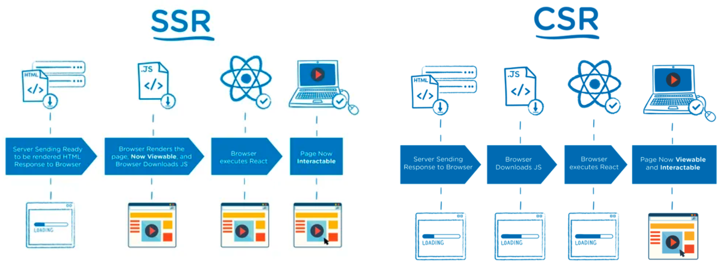 - React에서는 클라이언트 사이드 렌더링하기 때문에 서버에 영향을 미치지 않고, 서버에서 클라이언트로 응답해서 보낸 html도 거의 비어있습니다. 그러므로 서버에서 데이터를 가져올 때 지연 시간 발생으로 UX 측면에서 좋지 않을 수 있고, 검색 엔진 최적화에 문제가 됩니다.