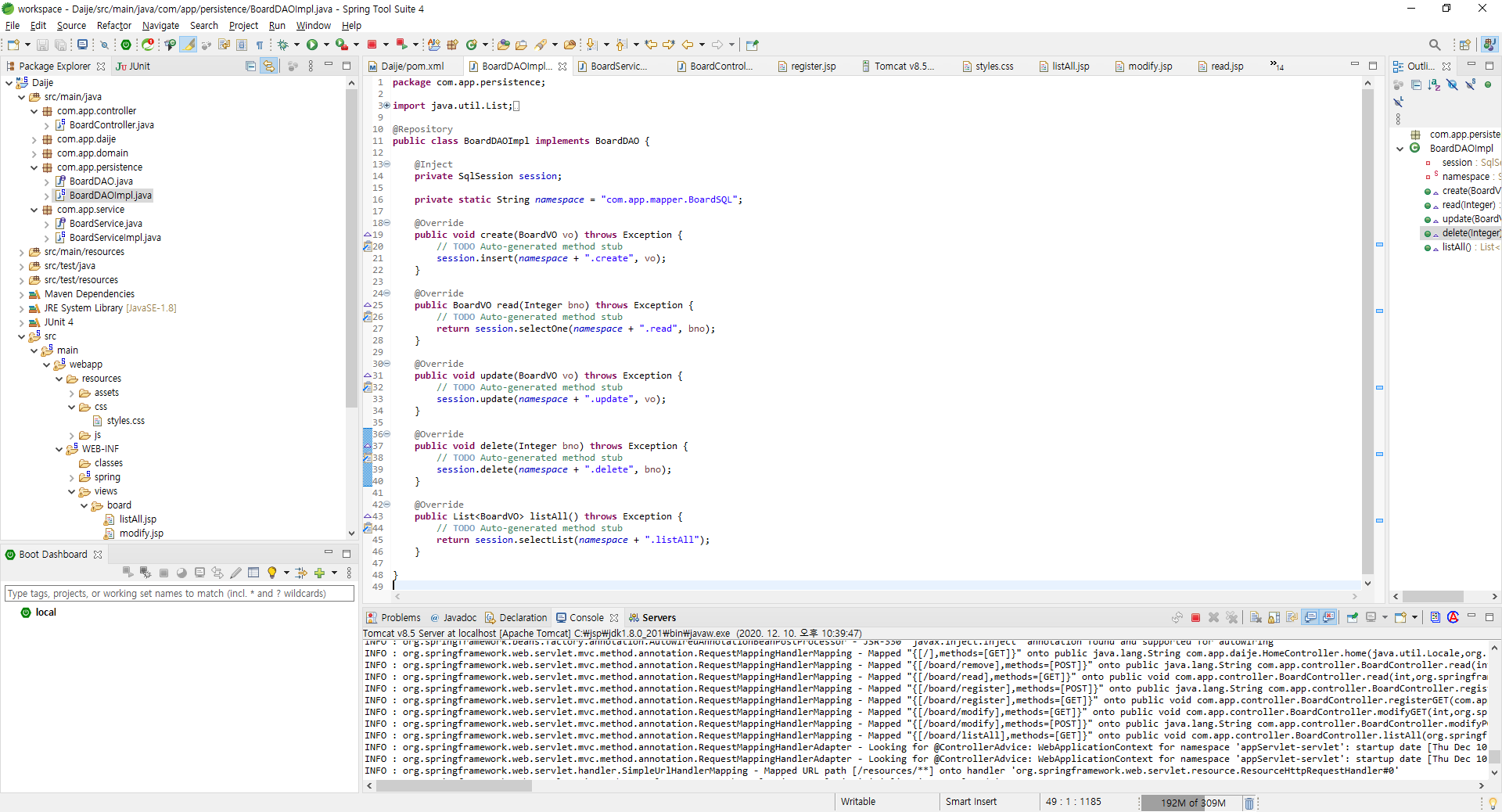 6. BaordDAOImpl 작성