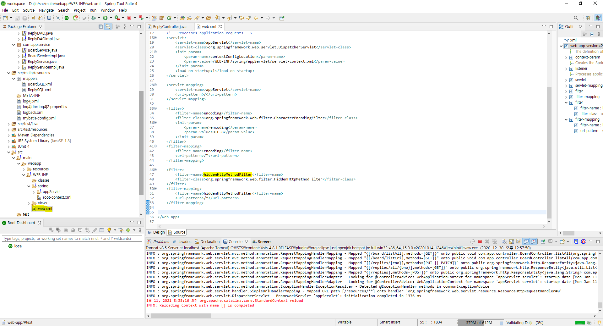 web.xml 반응형'Spring Web Project > 6. Ajax 댓글 (Reply)' 카테고리의 다른 글