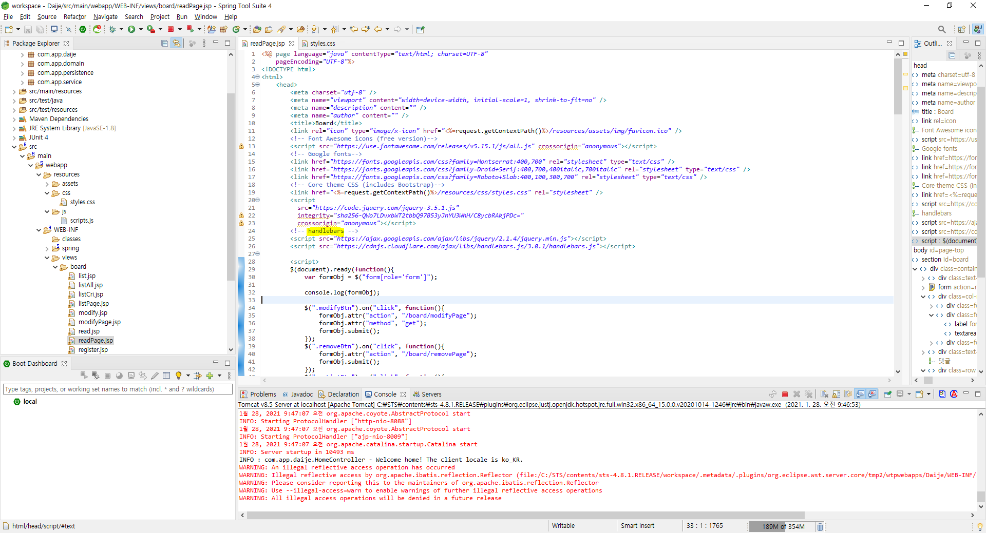 readPage.jsp 2. jQuery 라이브러리 로딩