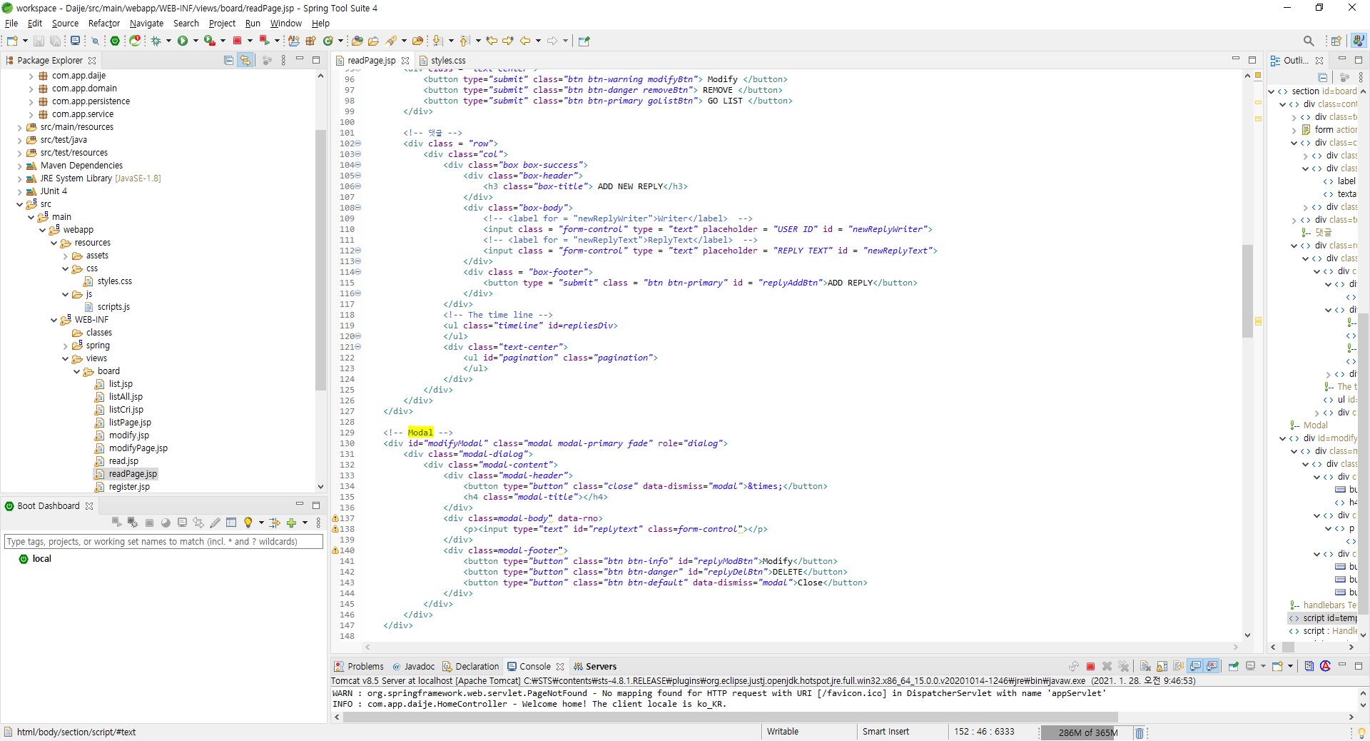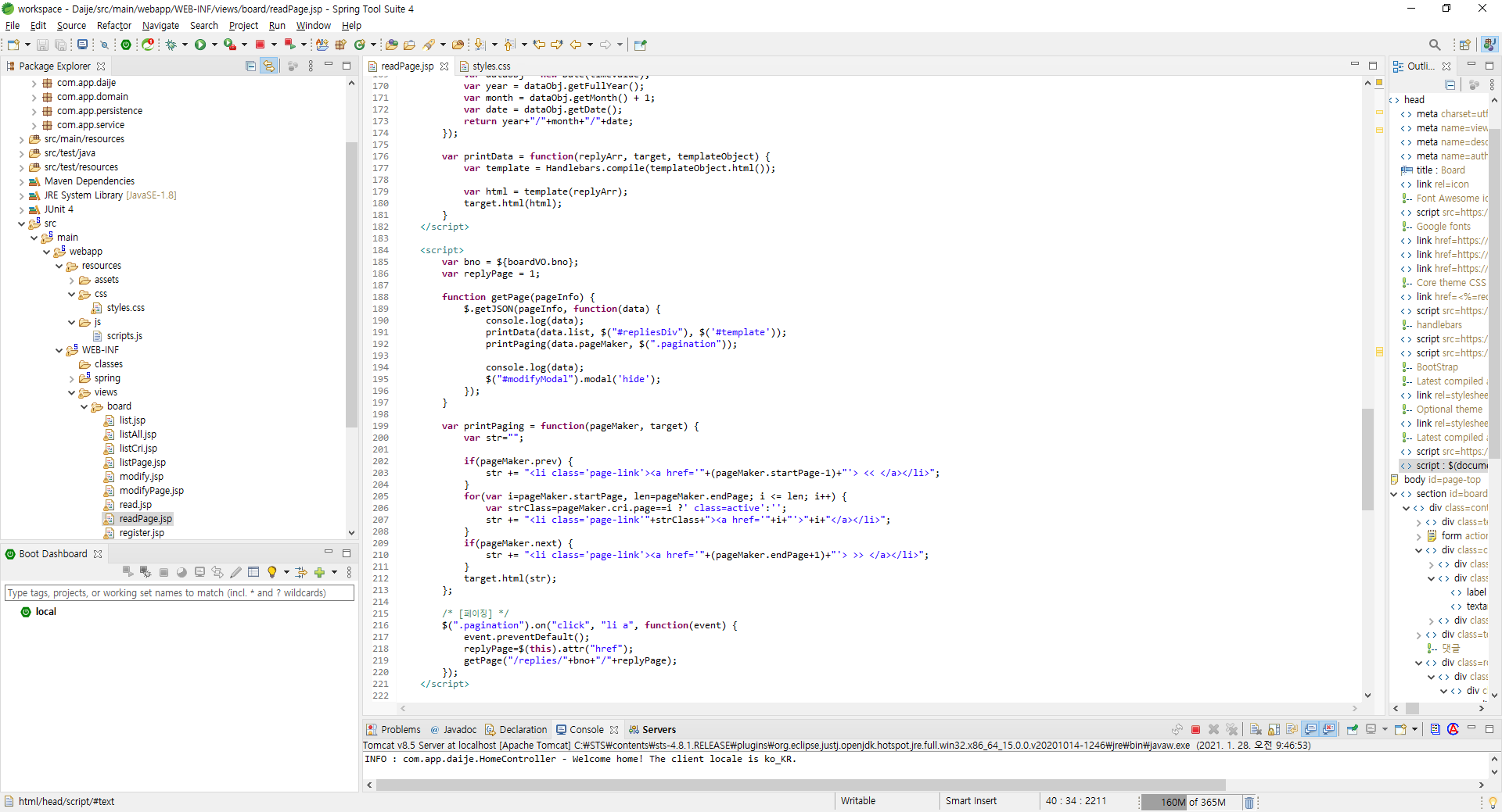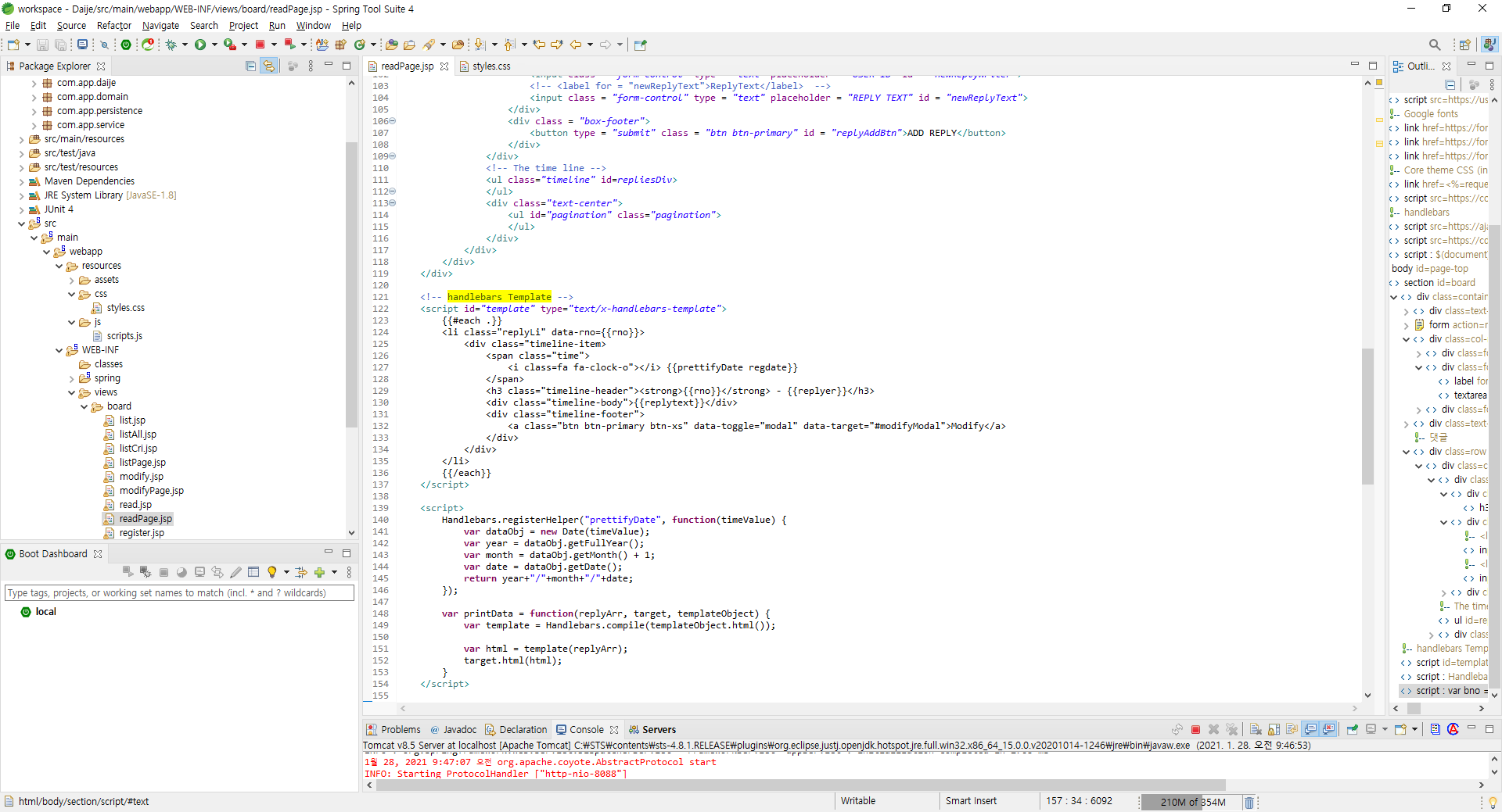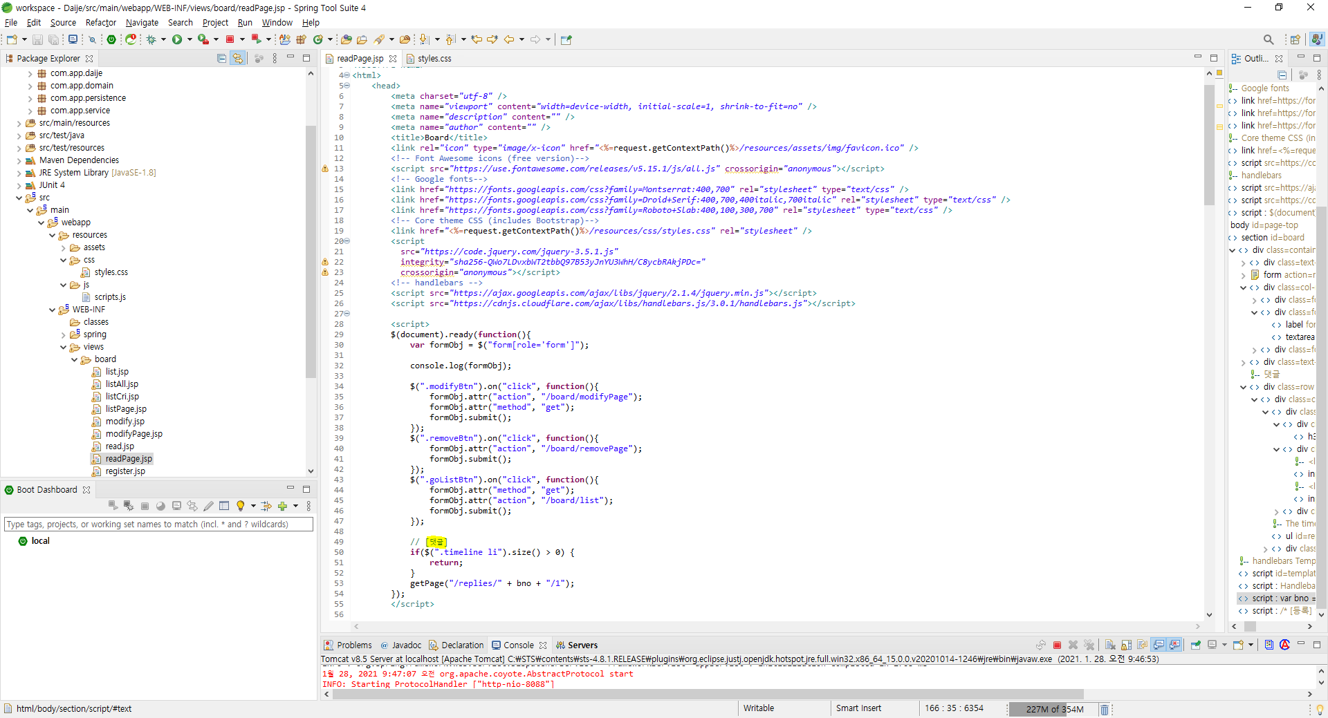 readPage.jsp > 템플릿을 이용하는 페이지 처리 5. [등록]