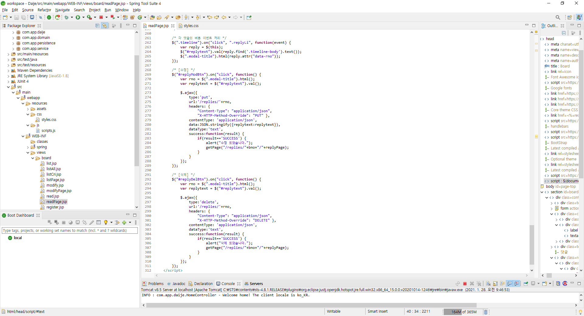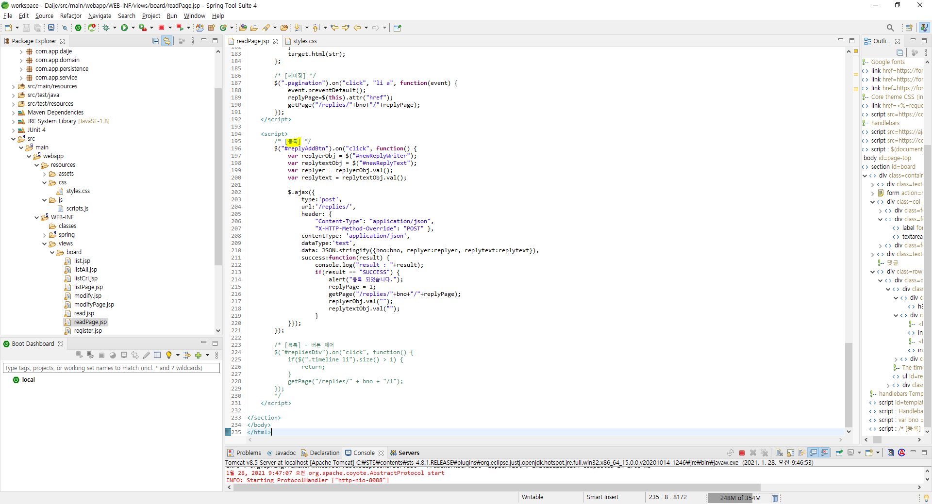 readPage.jsp 반응형'Spring Web Project > 6. Ajax 댓글 (Reply)' 카테고리의 다른 글